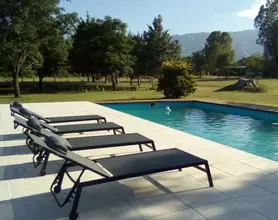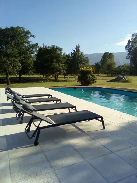 Disfrutá de la galería techada con asador individual, el parque con arboleda añosa y el uso de la pileta de natación del complejo, perfecta para relajarte y disfrutar del aire libre.