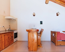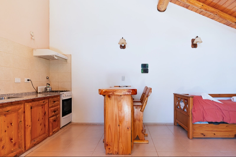 Descubrí el encanto de esta cabaña construida en piedra y madera, donde cada detalle invita al descanso y la conexión con la naturaleza. Con capacidad para hasta 4 pasajeros, es el refugio ideal para disfrutar en pareja, en familia o con amigos.