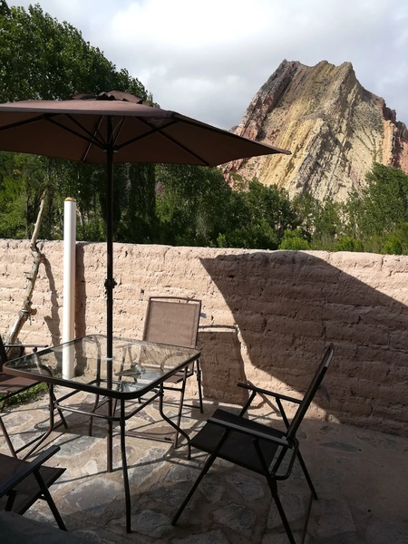 Casa pequeña y acogedora, sumamente tranquila, con una vista privilegiada al cerro Amarillo del pueblo de Juella, ubicado a 7 km al norte de Tilcara. Tiene un parque amplio con árboles de duraznos y salida hacia el río de Juella, donde se puede disfrutar de la tranquilidad y hermosas vistas panorámicas de los cerros quebradeños. Cuenta con un espacio externo privado con asador y horno a leña.