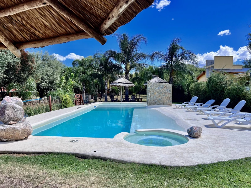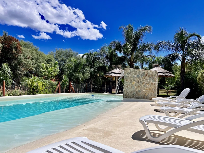 Cabañas ubicadas al pie de las Sierras, a 10 kilómetros de Merlo San Luis. El lugar ideal para escapar de la rutina diaria. El parque, las sierras y la calidez del diseño, te invitan a descansar y desconectar; la tranquilidad y el confort son nuestra meta para tu viaje.