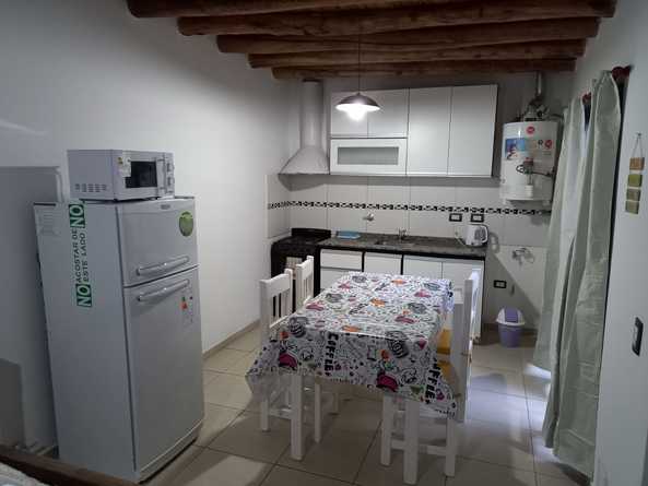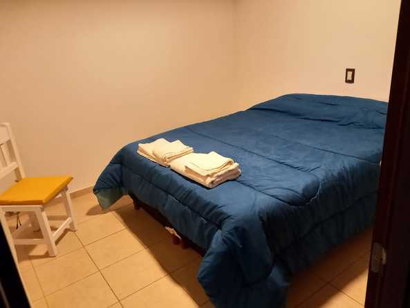 Cuenta con cocina comedor, baño, dos habitaciones, patio interno con churrasquera, cochera techada y cerrada para un vehículo mediano. Cocina completamente equipada, vajilla, heladera con freezer, horno a gas y microondas, pava eléctrica. TV Led y Wifi.