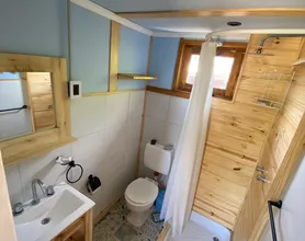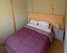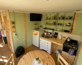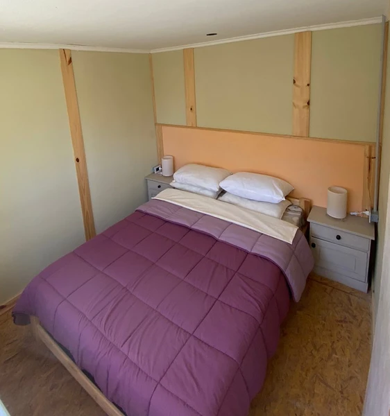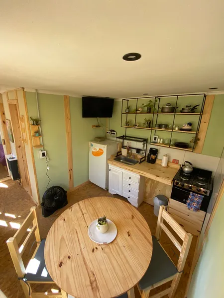 Cuenta con una habitación con cama de dos plazas, frazada y ventilador. La cocina comedor está equipada con vajilla completa, plasma 32" con deco.