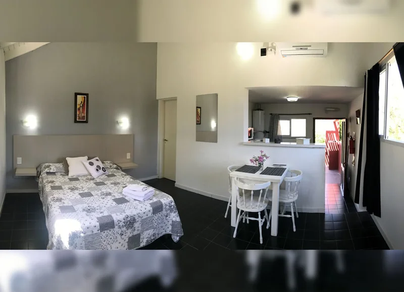 Tiene cosas excelentes como el parque interno y el acceso al arroyo que tiene el Complejo es increíble. Buena la atención y precio. No me gusto la calidad de la ropa de cama, no ofrecen desayuno, falta de veladores y el estado de alguno de los elementos de la cabaña no me gusto mucho. Relativamente lejos del centro comercial, es para ir con auto. Lo mejor del lugar el entorno natural y la privacidad.