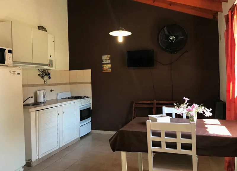 Cocina totalmente equipada (vajilla completa, heladera, cocina con horno, microondas, pava eléctrica)