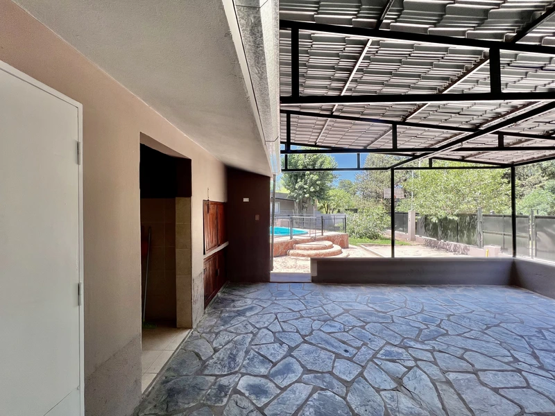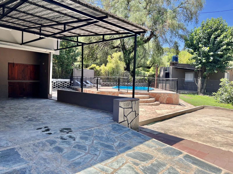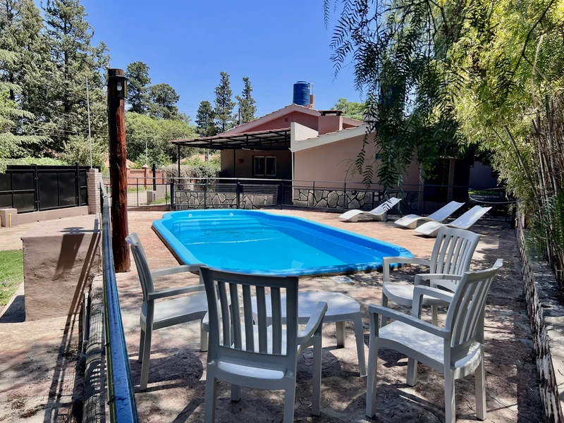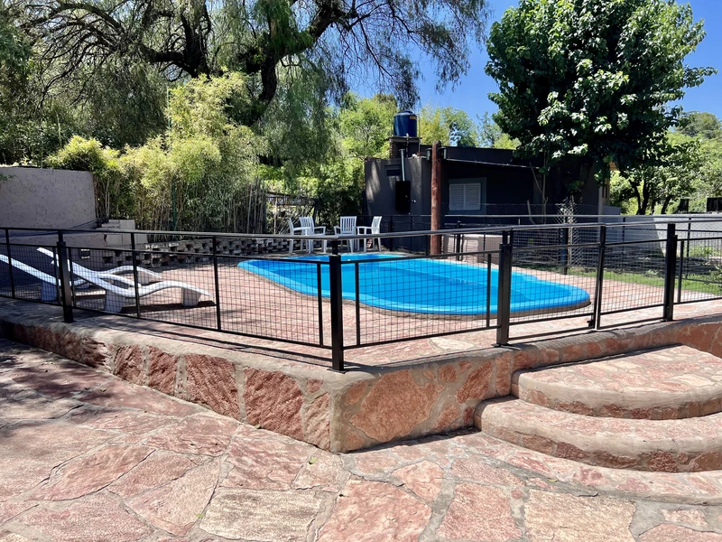 Pileta de 3x6 con cerco perimetral y solárium seco, reposeras.