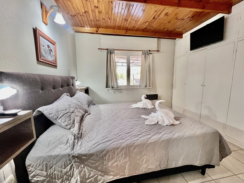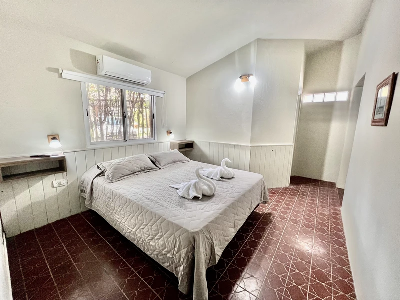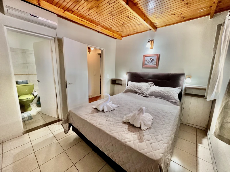 DORMITORIO 2: con baño en suite con bañera y secador de pelo, cama sommier matrimonial con doble pillow de 1,60, aire acondicionado, TV SMART de 32”, placard.