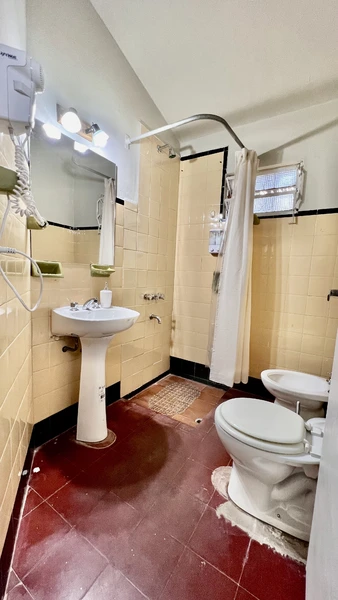 En el living sillón de 3 cuerpos, TV SMART de 50”, aire acondicionado.