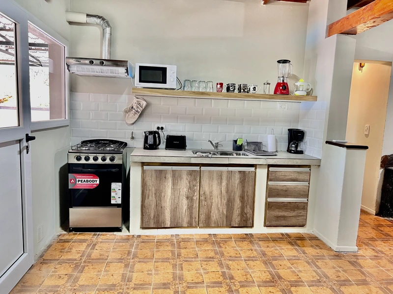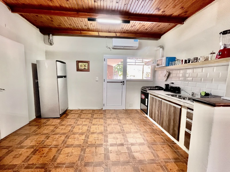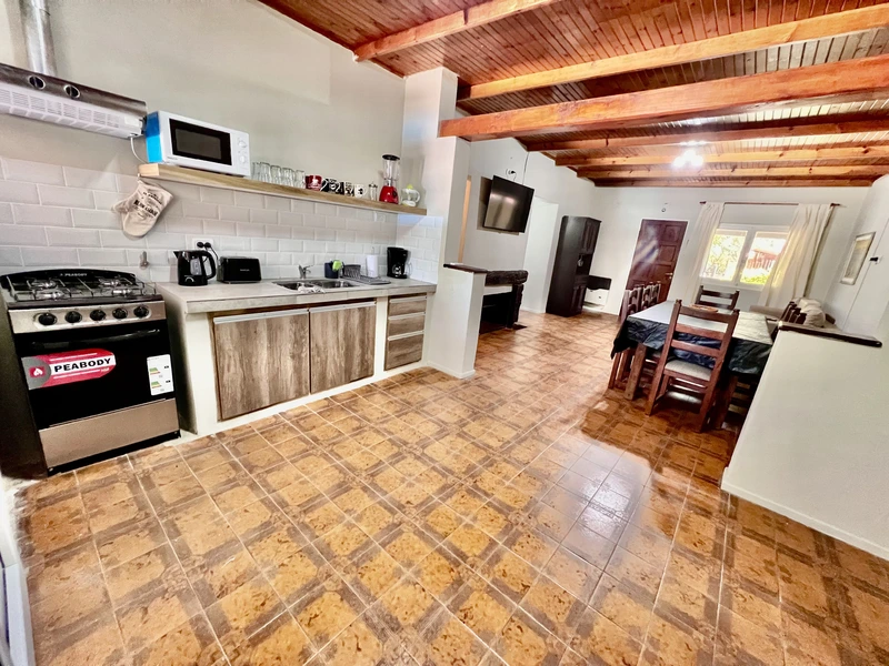 Cocina totalmente equipada con cocina con horno, extractor, heladera con freezer, microondas, tostadora, pava eléctrica, cafetera, juguera y licuadora.