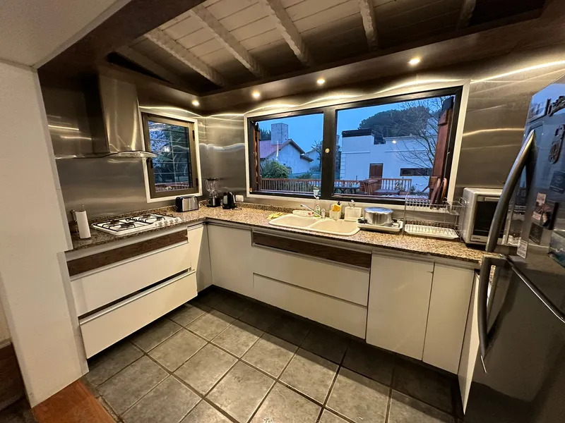 Además de las comodidades que ofrecen las instalaciones del lugar, como su amplio comedor, living y cocina, la cabaña se encuentra rodeada de un extenso jardín de 1500 mts acompañado de una pileta climatizada, que sin dudas contribuirá a que encuentre un espacio de relax y distención en sus vacaciones en la Costa.