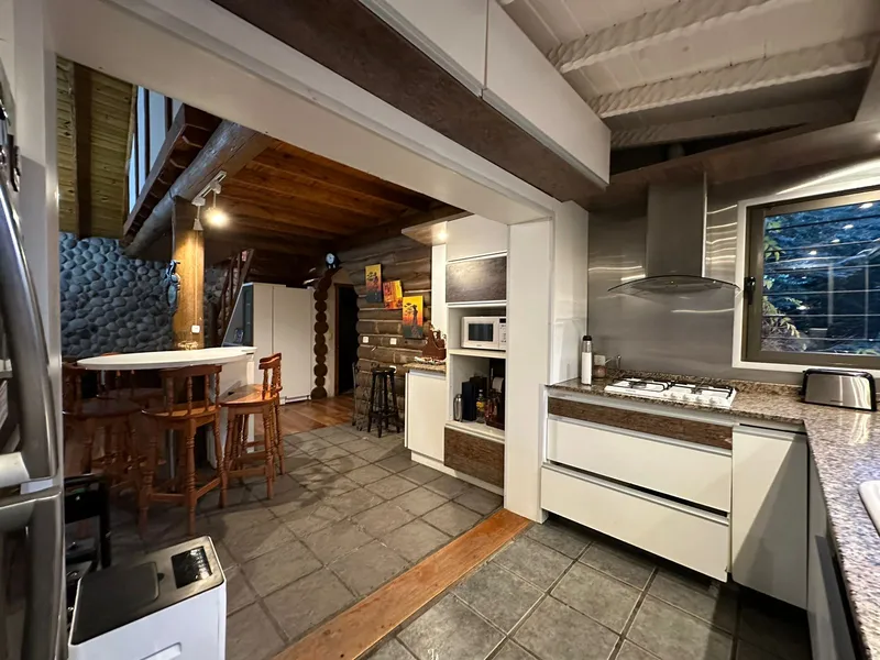 La cabaña cuenta con equipamiento para hasta 12 personas, siendo un armonioso lugar de encuentro tanto para amigos como para familias.
