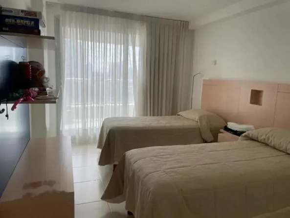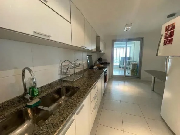 Departamento de 110m2 con amplio balcón con vista al mar. Cuenta con 3 Dormitorios (dos con baño en suite) mas otros 2 baños completos. Incluye: