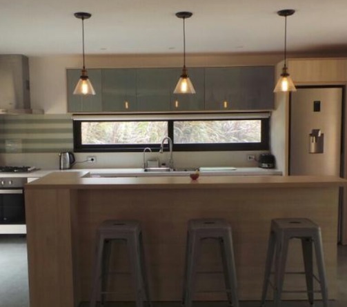 Es una construcción nueva, moderna y muy confortable en un entorno tranquilo y natural que invita al relax y al respeto por la naturaleza y el medio ambiente. Dormitorios con placares uno con cama doble y baño en suite y otro con 2 sommier de 1 plaza que pueden unirse como cama matrimonial a solicitud de los huéspedes. Sofá cama y marinera en el living. Cocina totalmente equipada con lavavajillas y agua filtrada por ósmosis inversa. Lavarropas, parrillero y ducha exterior con agua caliente. No se permite fumar dentro de la casa, ni realizar fiestas o eventos. Se cobra limpieza de salida. 6 personas.