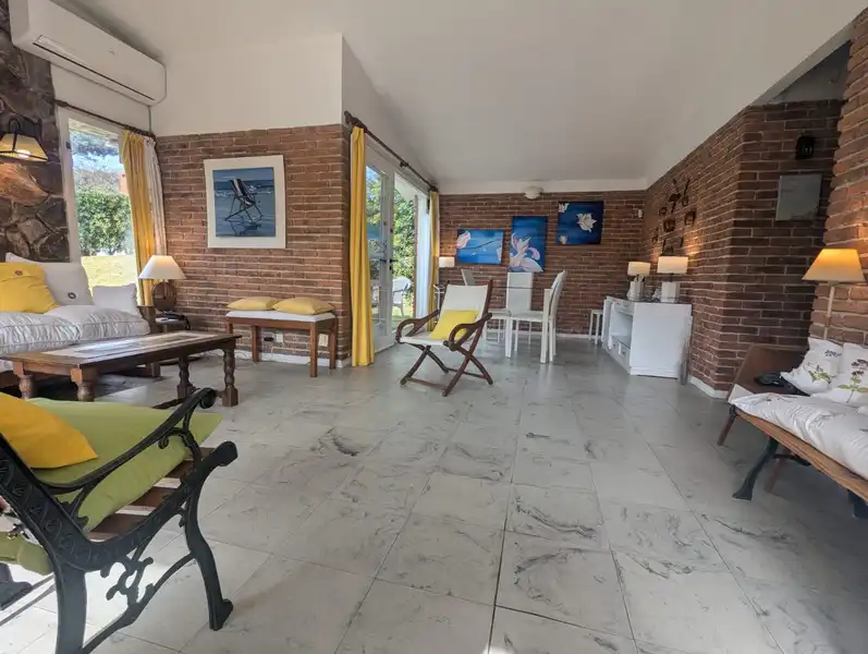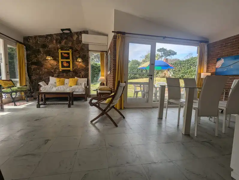 Descripción Cómodo e impecable Chalet de 3 dormitorios y 2 baños, para 6 personas. Wi-fi libre. Aire acondicionado en living comedor y dormitorio. Microondas. Heladera con Freezer. Lavarropas. Secador de cabello. 2 televisores de pantalla plana de led. Servicio de tv cable HD. Servicio de Mucama opcional. Decoración combinando cortinas y cubrecamas. Colchones de resortes. Parrilla muy cómoda. Vista al jardín también desde el comedor en L, con salida al jardín. Jardín. Estacionamiento hasta 2 autos. Mosquiteros en todas las aberturas. Inventario muy completo. Caja fuerte. Alarma y monitoreo de Prosegur. Rejas de seguridad. Los 2 baños nuevos. Situada en un vecindario residencial ,de chalets con jardines a 6 cuadras de la playa Mansa con estacionamiento . A 2 cuadras del supermercado "Devoto" y a pocas cuadras del Punta Shopping Para ver más fotos: