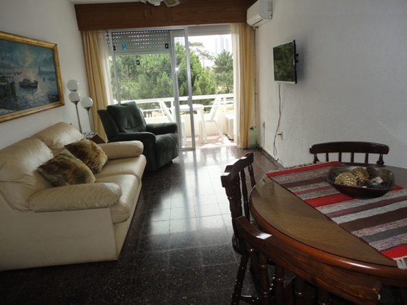 En el Design District, frente a Plaza México. Al frente, 2º piso por ascensor , a 4 cuadras de la playa Mansa y del Hotel Enjoy (ex Conrad) a 5 de la Brava, a 8 de la Terminal de ómnibus y a 6 del Shopping. Para 4 personas. Aire acondicionado en el living, cocina totalmente equipada, lavarropas, 1 dormitorio con sommier de dos plazas (queen) , 1 sillón bicama en el living, 2 tv cable, internet exclusiva del apartamento, sillas de playa y sombrilla. Se provee de sábanas, toallas y articulos de limpieza. Garage cerrado.