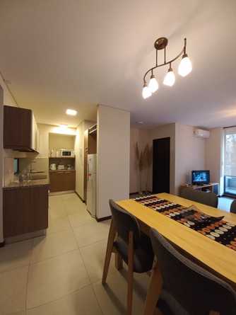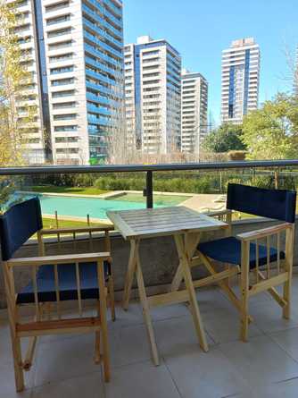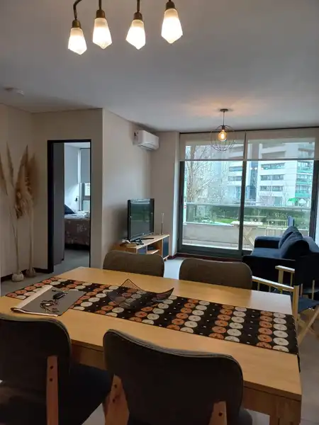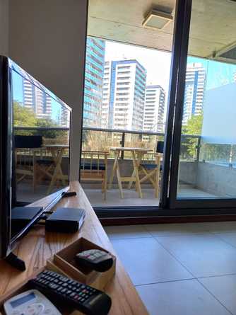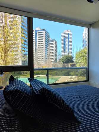Hermoso, moderno y amplio departamento de un dormitorio, equipado y mueblado, con utensilios de cocina y electrodomésticos, posee un amplio balcón con vista al complejo, a su enorme pileta y parque con bancos de descanso, posee también living exteriores, hall de lectura, zona de coworking, gimnasio, quincho con parrilleros, laundry y cochera. El complejo ubicado en la zona mas moderna y nueva de Rosario, frente al Shopping Alto Rosario, posee seguridad las 24 hs