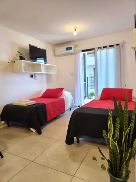 Hermoso Departamento Completamente amoblado a estrenar. Ubicado en el Macro Centro de la Ciudad de Salta, a pocas cuadras de la Plaza Central. Cuenta con todas las comodidades. Hermoso Departamento Completamente amoblado a estrenar, Living Comedor con aire acondicionado, calefacción centralizada en todos sus ambientes, cocina completa (Heladera, microondas, vajilla, pava eléctrica, etc.), habitación con somier para 2 personas, 2 somier individuales en el living para 2 persona, baño completo con bañera, bidet, lavarropas y secarropa, ropa de cama y toallas incluidas, balcón con asador, Red WIFI, Tv Smart y Caja fuere.