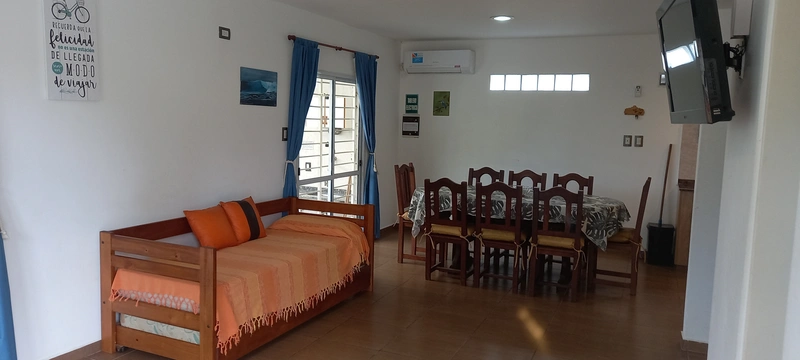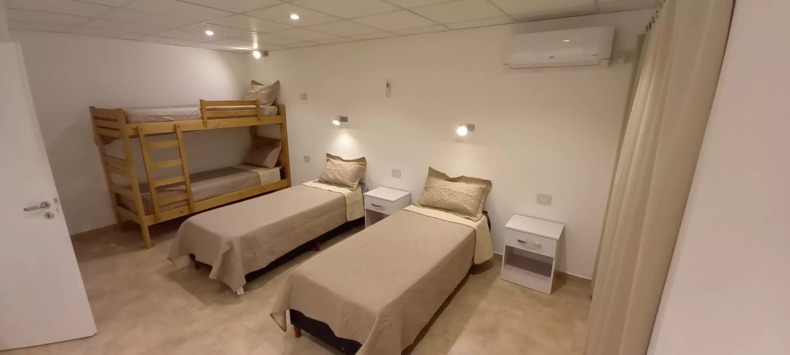El alojamiento "El Campito" con un espacio de casi 1000 m2, cuenta con 2 propiedades iguales (comunicadas entre sí) con espacios amplios y capacidad para 8 personas, cada una distribuidas y equipadas de igual manera: Planta Alta con dos dormitorios con aire acondicionado frío/calor (c/u) más baño con ducha y Planta Baja con cocina comedor también con aire frío/calor y baño con ducha.