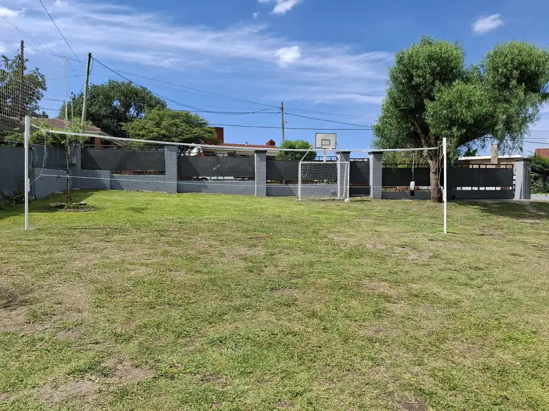 ** De Exterior: Mangrullo (Tobogán, hamacas, caño para deslizarse y mesita con bancos para jugar), Arenero, Cancha de Football, de Volley y Aro de Basketball.