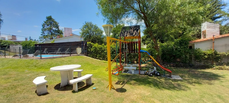 El parque posee pileta cercada y juegos para niños. Cuenta con seguridad tanto para las propiedades (cámaras y alarma monitoreadas) como para niños (en escaleras internas y en las camas cuchetas).