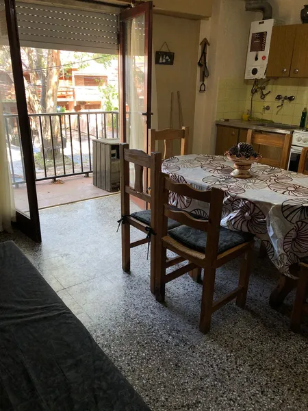Cuenta con dos ambientes amplios. Cocina completa, comedor. Mesa con 6 sillas, heladera. En el living hay dos sillones que se hacen cama de dos plazas.