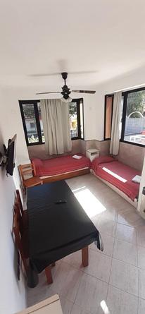 ⭐-Ubicado 📍 CALLE LA RIOJA 1555 📍 📍 SAN BERNARDO📍 3 cuadras del MAR y 2 cuadras del centro comercial.-⭐-Departamentos modernos 2 ambientes cómodos y luminosos de 40 mts..-Equipados con capacidad desde 2 hasta 5 personas-⭐-Sobre amplio lote de 600 mts 2..PISCINA CLIMATIZADA Y JACUZZI, espacio verde con mesas, sombrillas y sillas . -----*EQUIPAMIENTO:-Sommier de 2 plza y colchones 1° marca -Edredon de pluma -Frazadas polar -Mantas verano-Cortinas black out -Calefacción en comedor y habitación -Ventilador de techo en comedor y habitación -Vajilla completa -Batería de ollas -Cafetera -Cocina convencional con horno -Heladera con freezer --Silla de comer para bebe. practicuna y bañadera (Sujeto a disponibilidad)