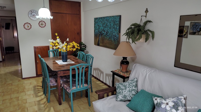 Hermoso semi piso, 3 AMBIENTES, a MEDIA CUADRA DEL MAR y media cuadra de Chiozza. 3 cuadras de avenida San Bernardo. Quinto piso, VISTA AL MAR. 2 dormitorios, living comedor, cocina separada, lavadero, balcón a la calle. Smart TV LCD 42 pulgadas con acceso a las mejores plataformas de STREAMING (Netflix, You Tube, Flow TV, Disney Chanel, etc) 2° televisor en dormitorio, microondas, vajilla competa, ropa de abrigo de cama. INTERNET WI-FI Detalles de categoría. COCHERA CUBIERTA. Incluye todos los servicios, menos ropa de cama y art. de playa.