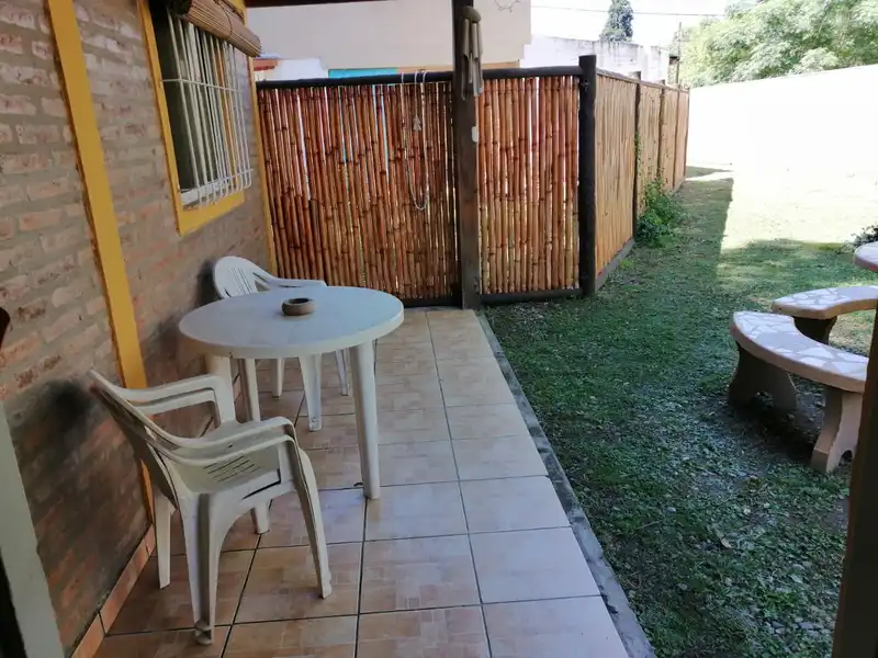 El patio cuenta con asadores, cocheras cubiertas, mesa y bancos .