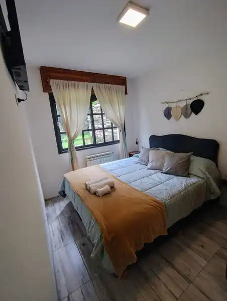 Ubicados en Villa los Coihues, con acceso plano, en un entorno natural, a 12km del centro de Bariloche, a 13km del cerro catedral y a 100 mtrs del lago gutierrez . EL departamento ubicado en planta baja es de 3 amb con capacidad para 4 pasajeros. Cuentan con, heladera con freezer, microondas, pava eléctrica, cocina, extractor de aire, utensilios de cocina, smart TV, Internet Starlink, ropa blanca, acolchados, elementos de higiene, papel higiénico, jabón champú, crema enjuague, toallas, secador de pelo, calefacción por radiadores, agua caliente.