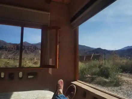 Casa pequeña y acogedora, sumamente tranquila, con una vista privilegiada al cerro amarillo del pueblo de juella, ubicado a 7 km al norte de tilcara. tiene un parque amplio con árboles de duraznos y salida hacia el río de juella, donde se puede disfrutar de la tranquilidad y hermosas vistas panor...