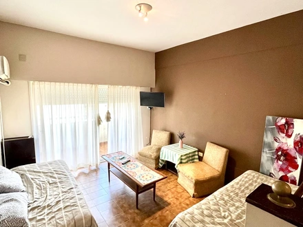 El depto es un monoambiente ideal para 2 personas, reciclado a nuevo, tv 32 "con aplicación para ver canales⁰wifi. con aire acondicionado cocina con horno a gas,vajilla completa, heladera, baño impecable, un gran ventanal , esta en un 7mo piso, el edificio cuenta con 3 ascensores. a pasos del s...